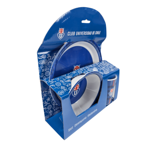 Set Desayuno Universidad de Chile Plato + Bowl + Vaso Melamina 3 piezas.
